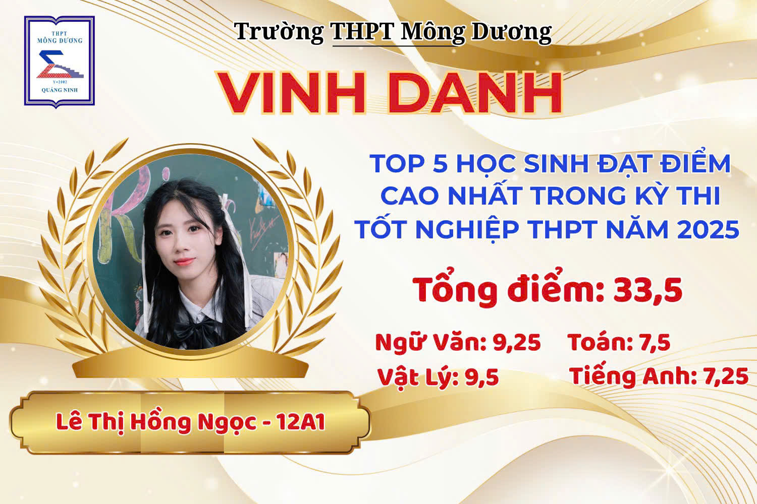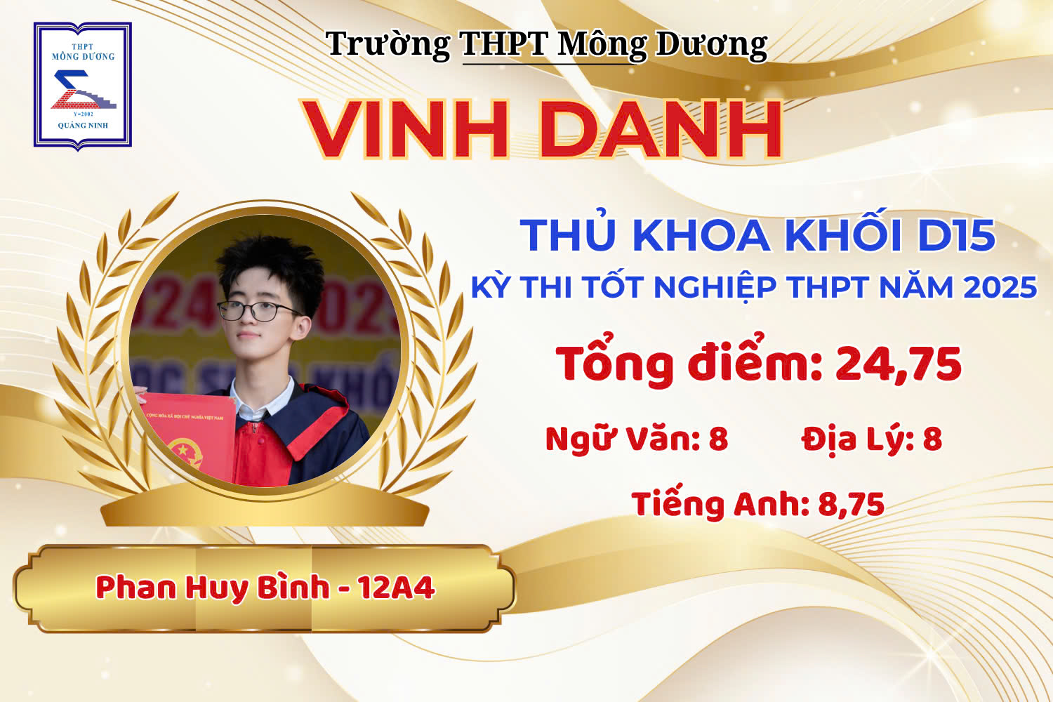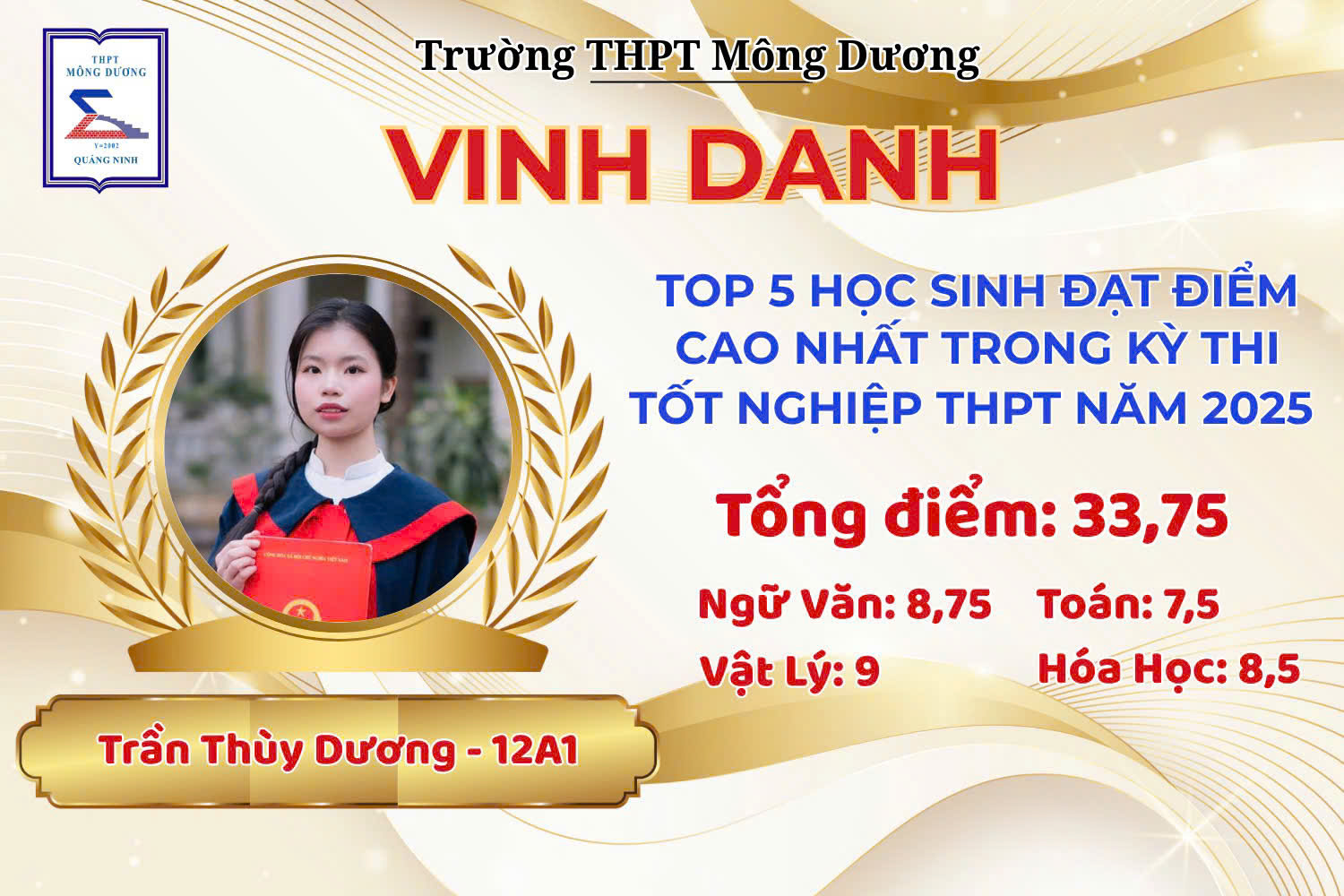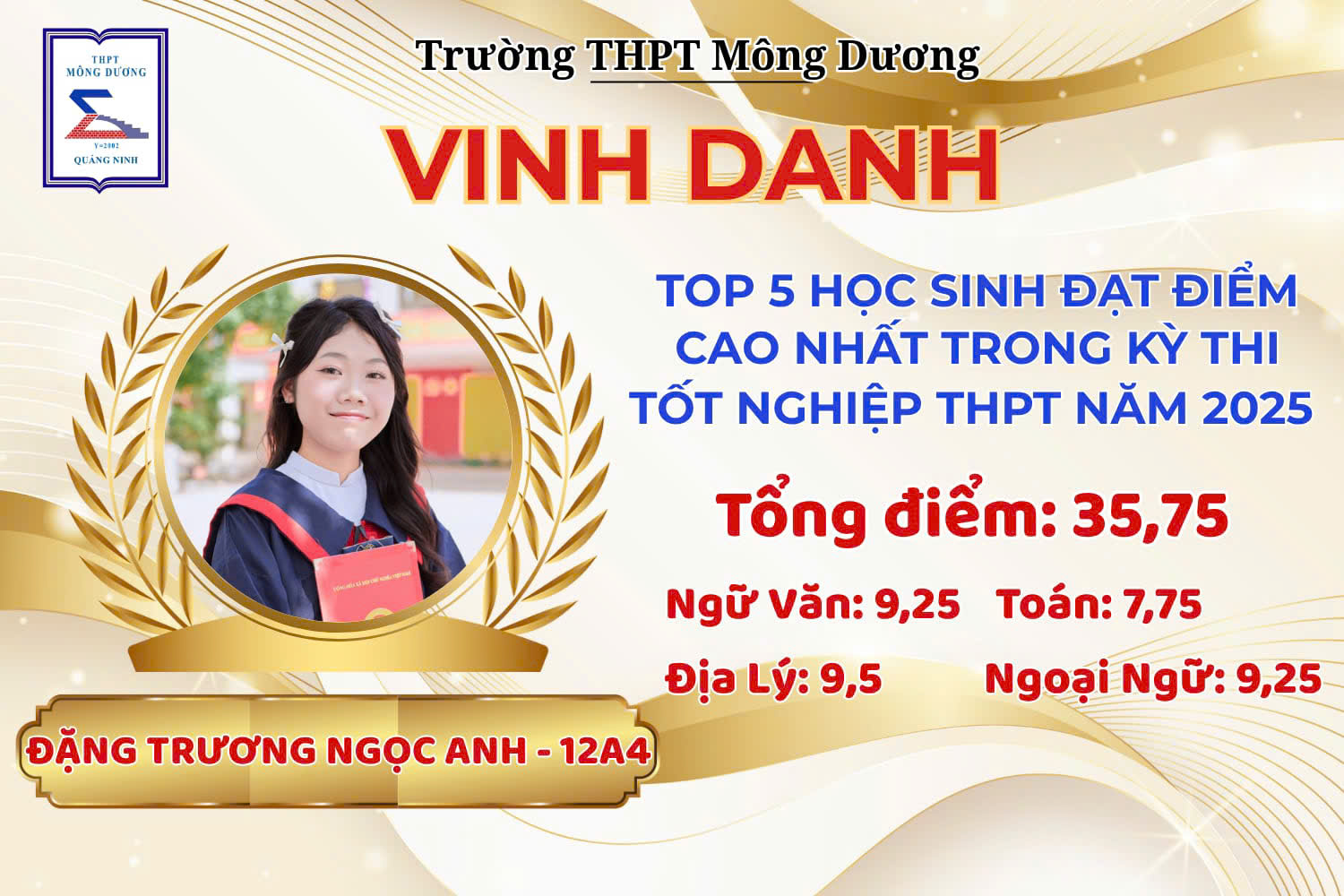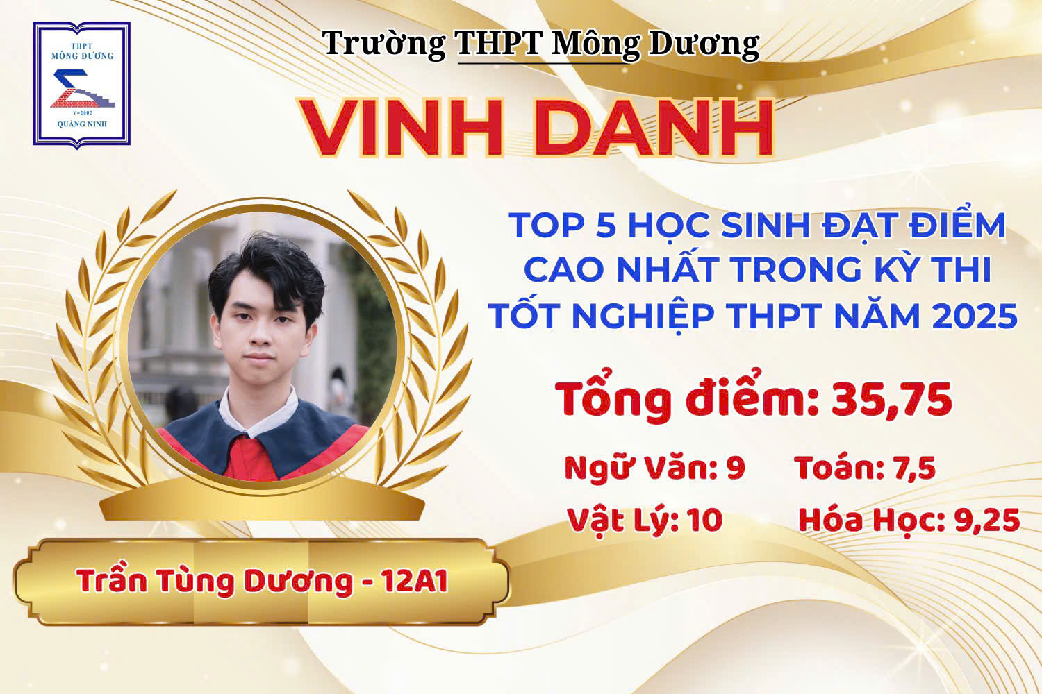 TRƯỜNG THPT MÔNG DƯƠNG VINH DANH THỦ KHOA VÀ HỌC SINH CÓ THÀNH TÍCH CAO NHẤT KỲ THI TỐT NGHIỆP THPT NĂM 2025