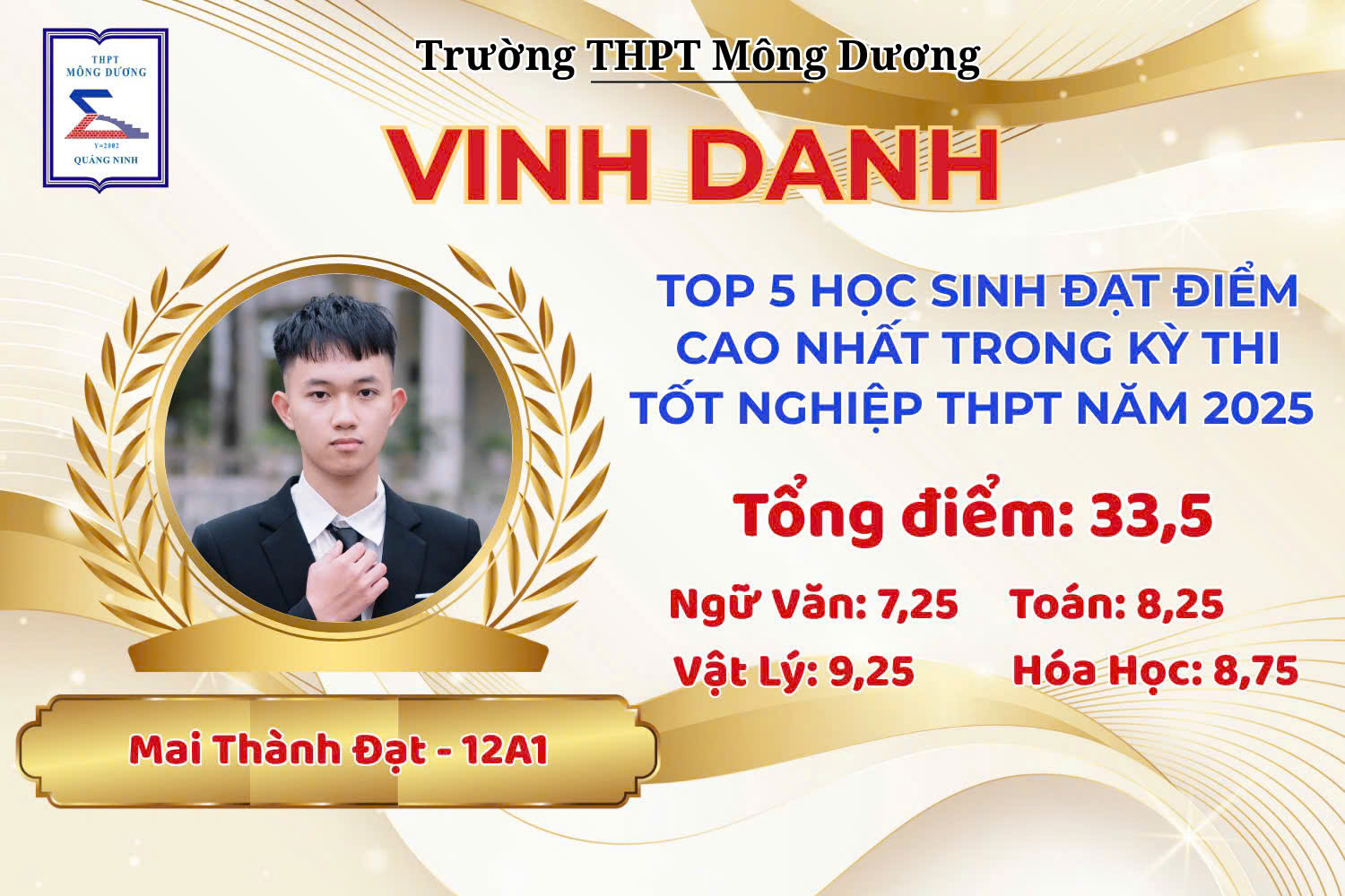 - Mai Thành Đạt – 12A1 – 33,50 điểm